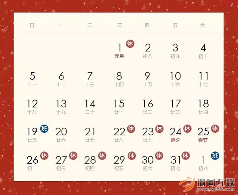 2020年春節(jié)假期就要來啦!惜別2019,我們迎來了充滿希望、機(jī)遇和挑戰(zhàn)的2020年!也是渝互聯(lián)即將跨入第二個十年的開篇。在此,感謝大家在過去一年里對渝網(wǎng)互聯(lián)的支持與信任。