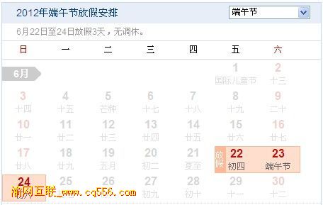 6月22日(星期五)至24日(星期日)放假公休,共3天。其中,6月23日(星期六)為端午節(jié)。